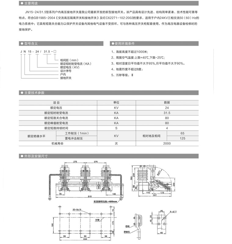 帶*項為必填項目咨詢:JN15-24/31.5型戶內高壓接地開關
