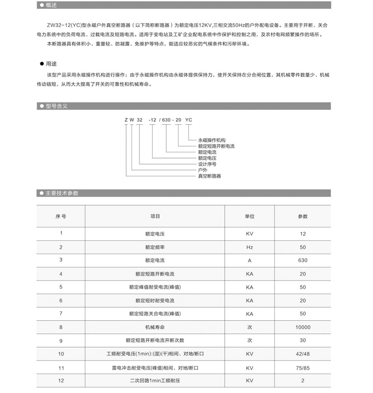 • ZW32-12(YC)型永磁戶外真空斷路器